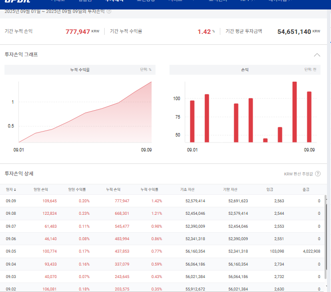 두계좌 9일 운영 성과는 543만원으고 9월초 장이 좋지 않은 것 대비 나쁘지 않은 성과