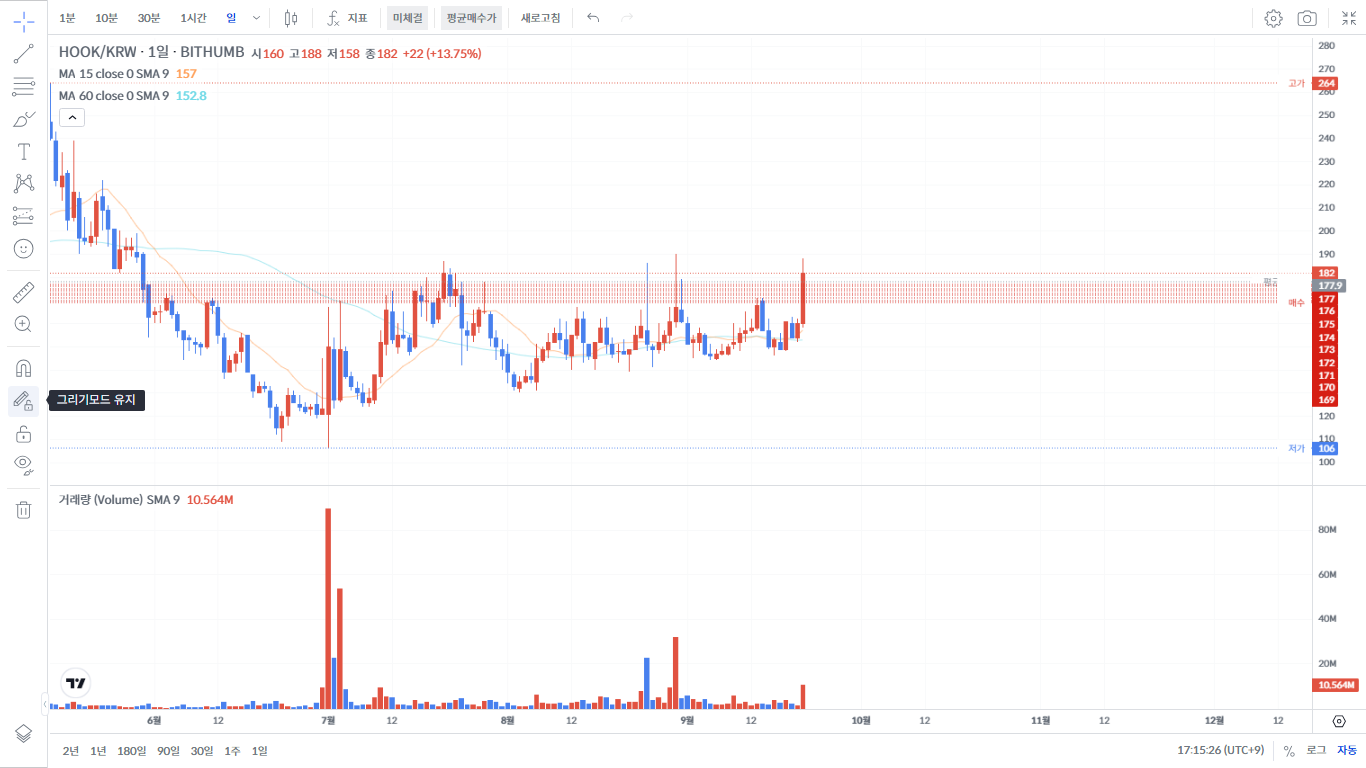 HOOK(훅트 프로토콜) 코인 전망 — 역사적 거래량 레벨 돌파 & 박스 상단(187원) 테스트