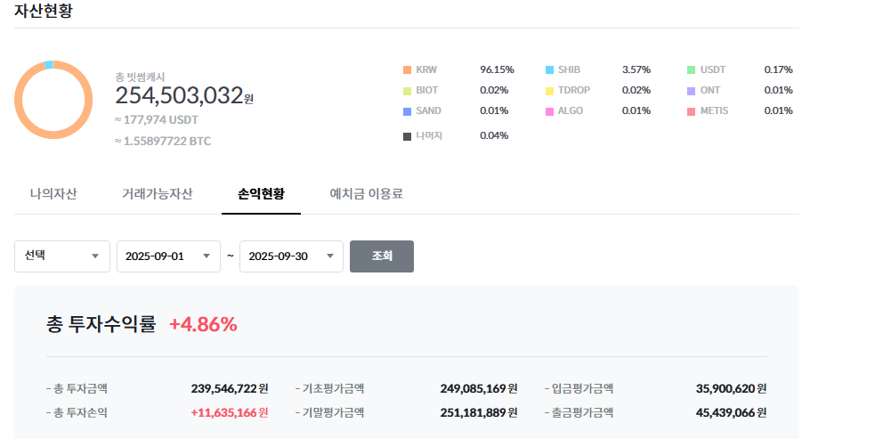 업비트·빗썸 코인 자동매매 25년 9월 수익 결과 1700만원 익절