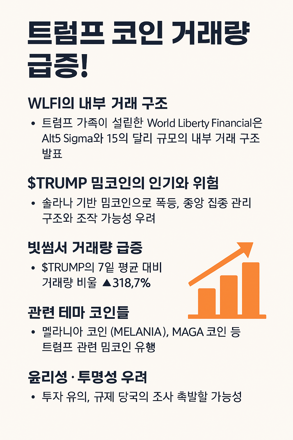 이번 이슈는 트럼프 일가의 암호화폐 확장 전략과 더불어, 투자 시장에서의 높은 변동성과 규제 불확실성을 명확히 보여줍니다. $TRUMP 거래량 급증은 단순한 관심을 넘어서 시장 기조 변화의 신호일 수 있습니다.